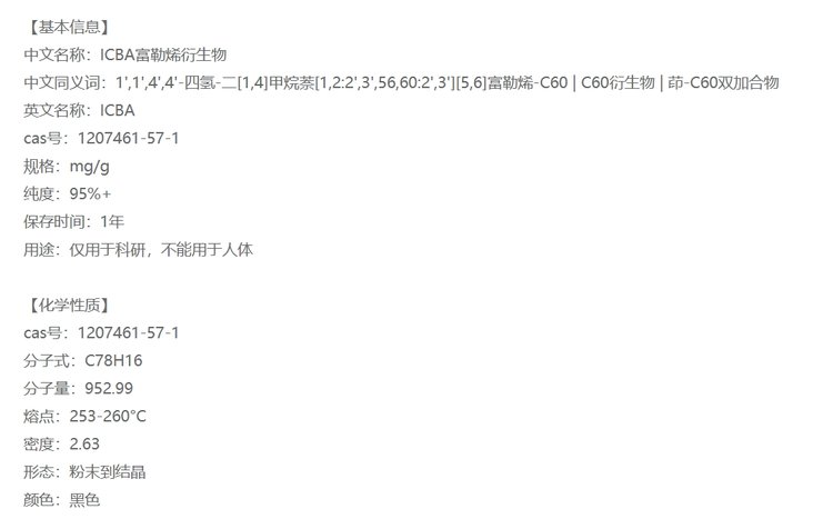 cas:1207461-57-1 ICBA富勒烯衍生物 分子式C78H16 分子量952.99